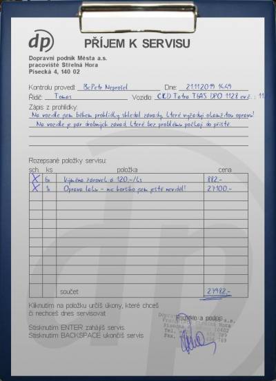 3. klávesou Enter potvrďte, že chcete zahájit servis a vyčkejte na zobrazení servisního protokolu